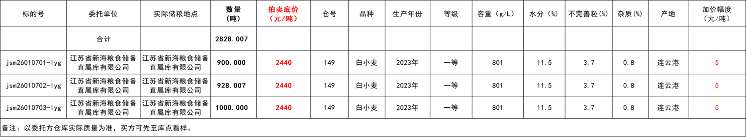 受江蘇省新海糧食儲備直屬庫有限公司委托,江蘇糧油商品交易市場暨連云港分市場舉辦本次地方小麥競價銷售交易活動。具體事宜公告如下: