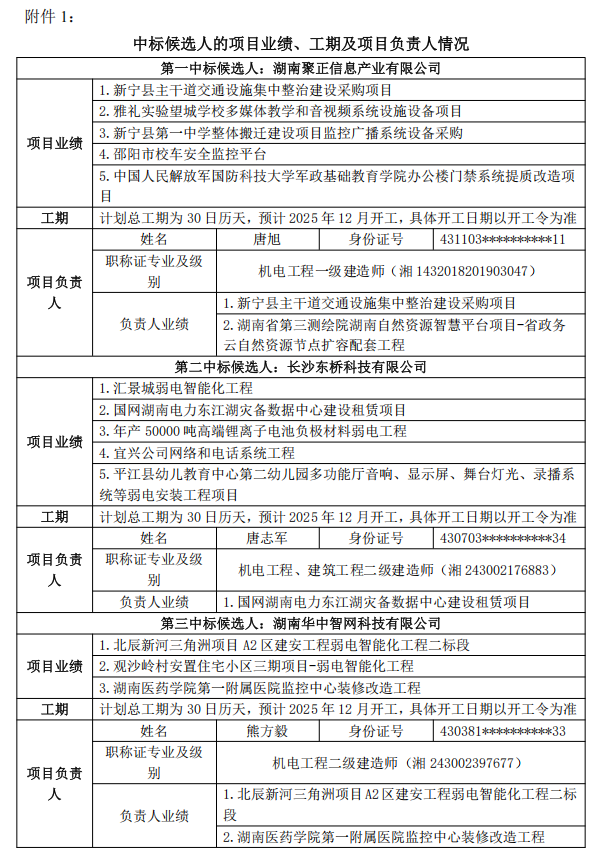 附件1:中標(biāo)候選人的項(xiàng)目業(yè)績、工期及項(xiàng)目負(fù)責(zé)人情況