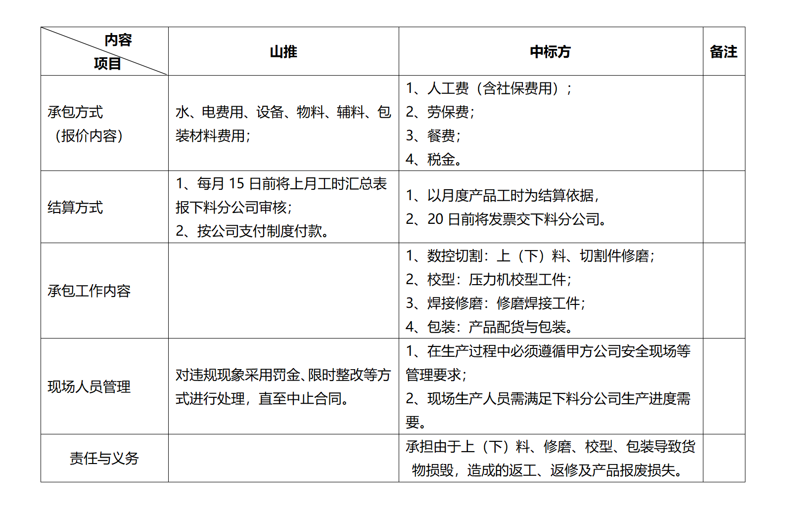 1. 項(xiàng)目名稱: 下料分公司上(下)料、修磨業(yè)務(wù)外包項(xiàng)目 ?