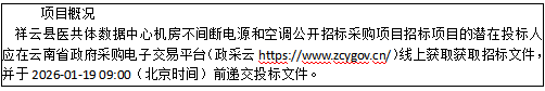 項(xiàng)目名稱:祥云縣醫(yī)共體數(shù)據(jù)中心機(jī)房不間斷電源和空調(diào)公開(kāi)招標(biāo)采購(gòu)項(xiàng)目