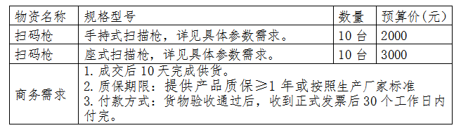 我院擬采購(gòu)掃碼槍1批。項(xiàng)目進(jìn)行院內(nèi)議價(jià)采購(gòu),歡迎符合資格條件的供應(yīng)商參加報(bào)價(jià)。