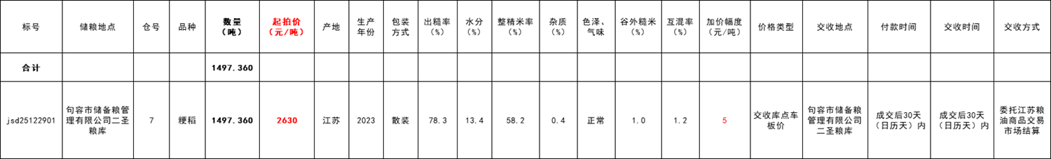 受******有限公司委托,江蘇糧油商品交易市場(chǎng)舉辦本次地方粳稻競(jìng)價(jià)銷售交易活動(dòng)。具體事宜公告如下: