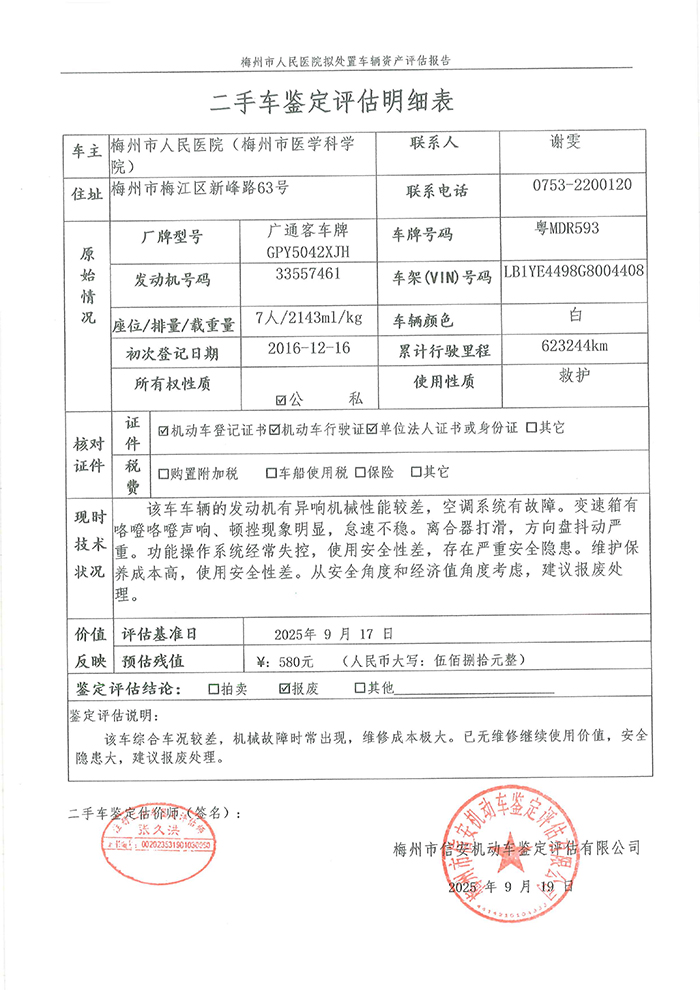 一、資產(chǎn)概況:1輛救護(hù)車(chē),賬面原值453000元。