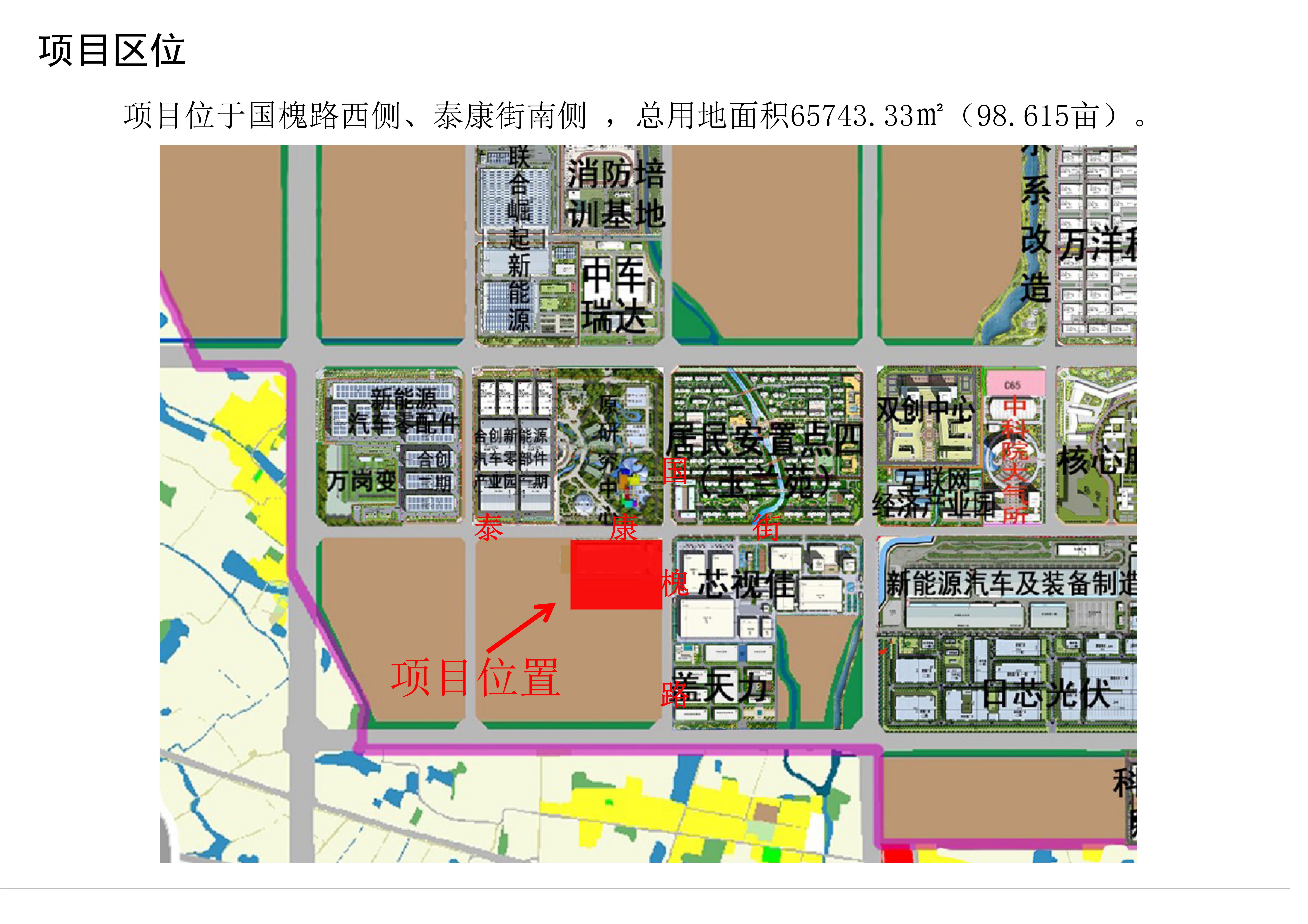 項(xiàng)目地塊位于高新區(qū)泰康街南側(cè)、國(guó)槐路西側(cè),總用地面積65743.33㎡(約98.615畝)。規(guī)劃建設(shè)廠房、綜合樓等。規(guī)劃總建筑面積約5.45萬(wàn)㎡,計(jì)容總建筑面積約11.67萬(wàn)㎡,容積率約2.03,建筑系數(shù)約62.88%,綠地率約2.3%;設(shè)置機(jī)動(dòng)車停車位約108個(gè),非機(jī)動(dòng)車停車位約580個(gè)。